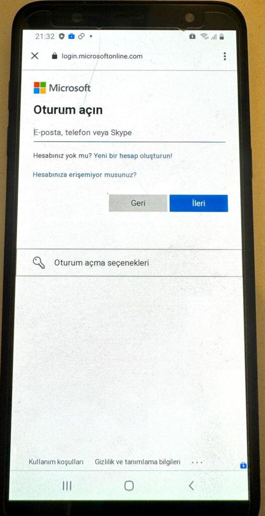 Kullanıcının şirket mail adresi ile giriş yapıyoruz.