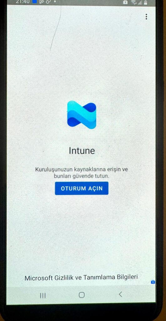 Intune” ekranonda yine office 365 mail adresimiz ile oturum açıyoruz.